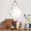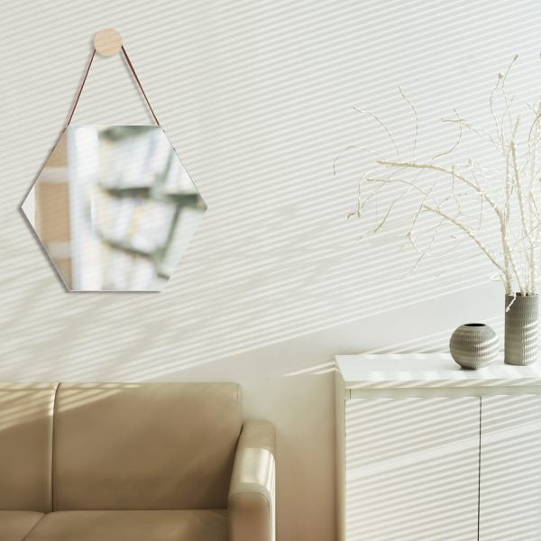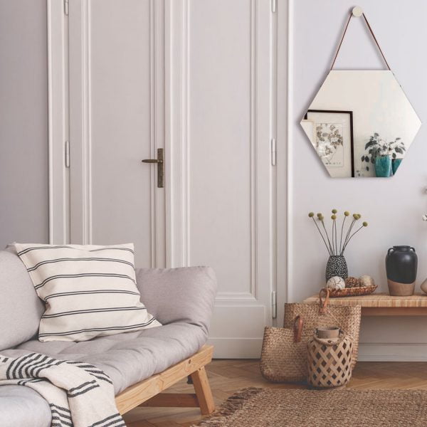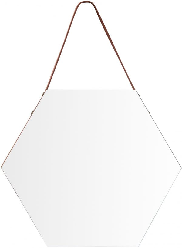 | CARACTERÍSTICAS | ESPEJO HEXAGONAL DECORATIVO CON COLGANTE DE CUERO |