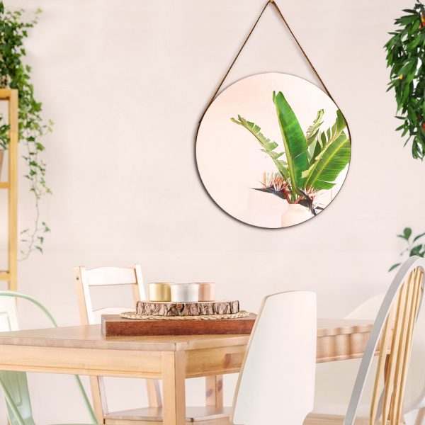 CARACTERÍSTICASESPEJO CIRCULAR DECORATIVO CON COLGANTE DE CUERO